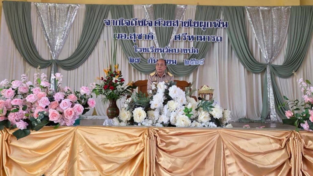 เมื่อวันจันทร์ที่ 29 กันยายน พ.ศ.2568 ผู้บริหาร คณะครู นักเรียนโรงเรียนวัดบางบ่อ จัดกิจกรรมแสดงมุทิตา อำลาสถาบัน แด่ผู้เกษียณอายุราชการ ปี 2568 ดร.สุชาติ ศรีหานารถ ผู้อำนวยการโรงเรียนวัดบางบ่อ โดยมีตัวแทนนักเรียนขึ้นมอบพวงมาลัยและกล่าวแสดงมุทิตาจิต ด้วยความรัก ความผูกพันด้วย ณ อาคารอเนกประสงค์โรงเรียนวัดบางบ่อ