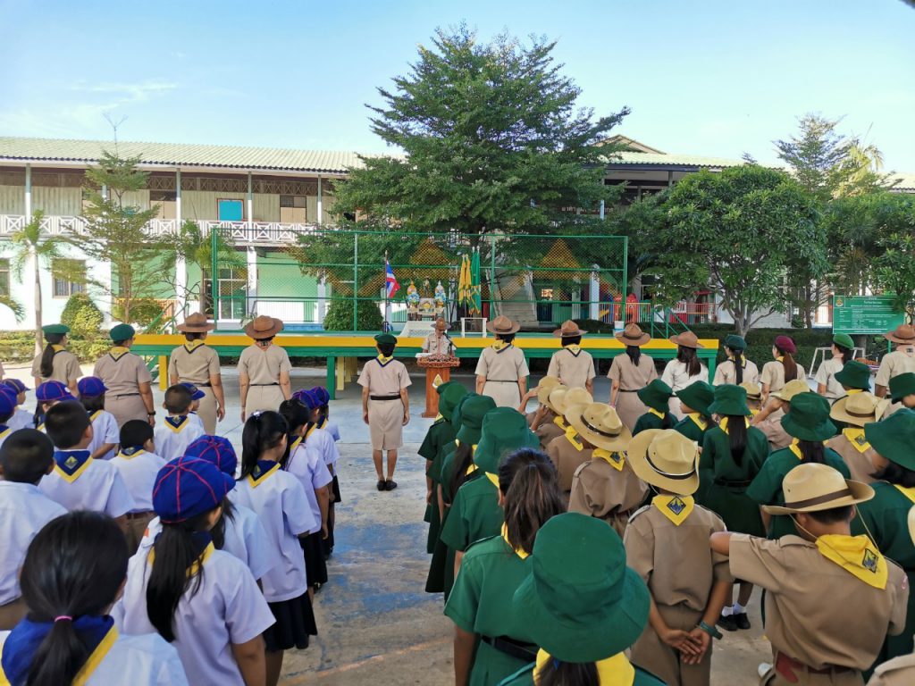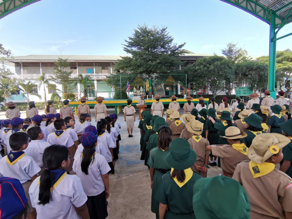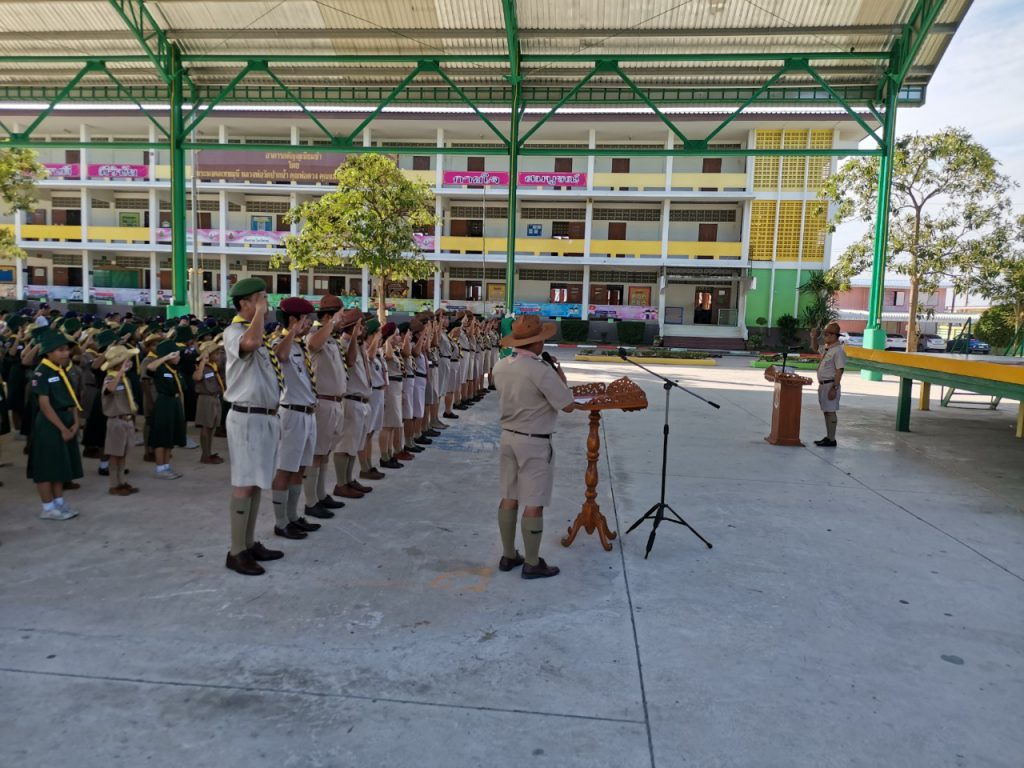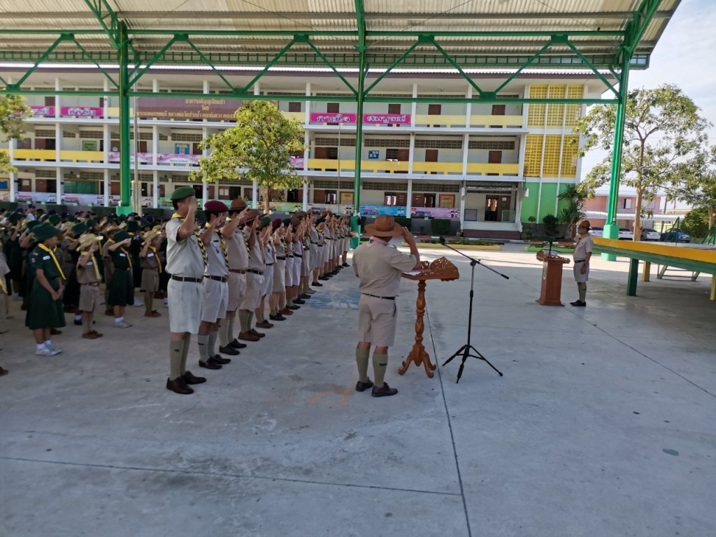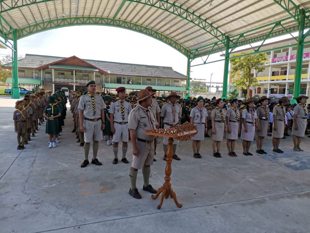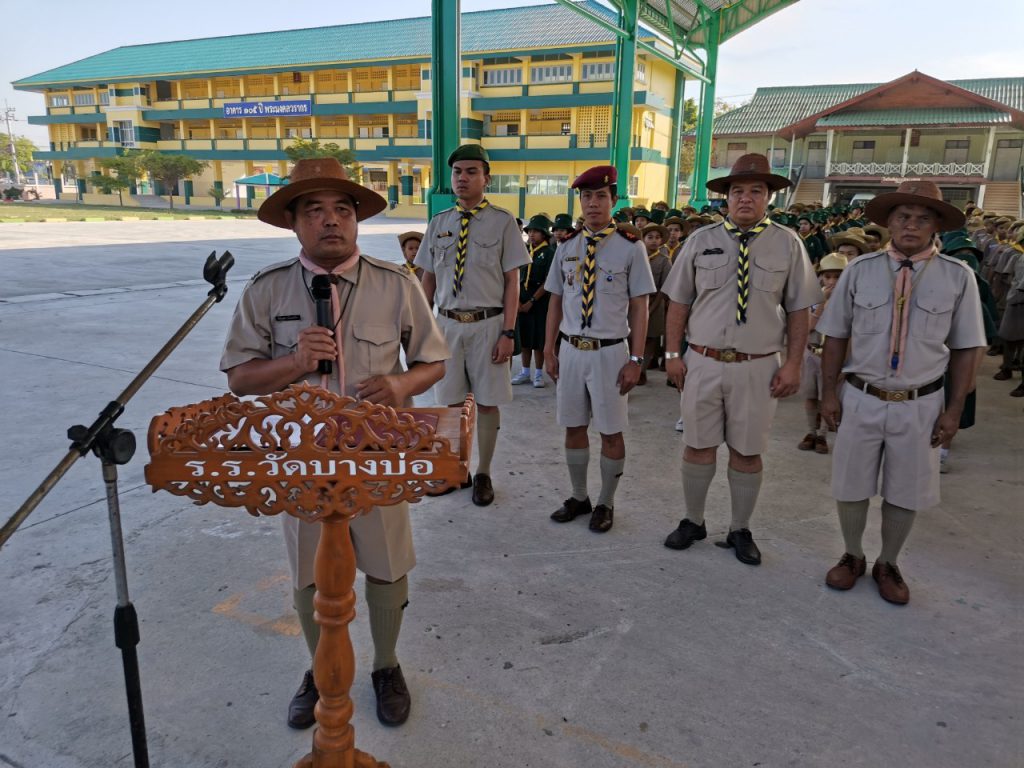 โรงเรียนวัดบางบ่อจัดพิธีถวายราชสดุดีเนื่องในวันสถาปนาลูกเสือ และบำเพ็ญประโยชน์