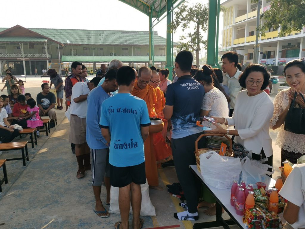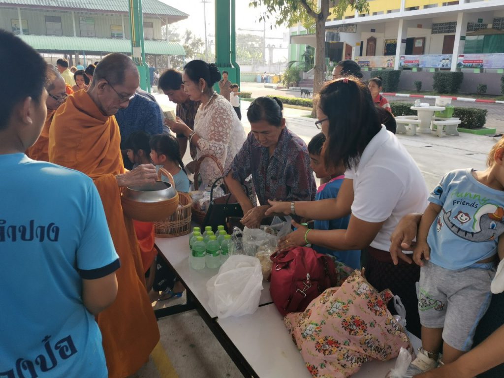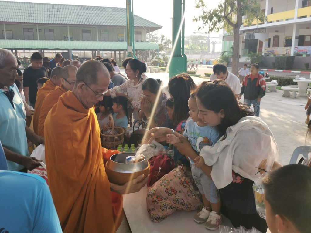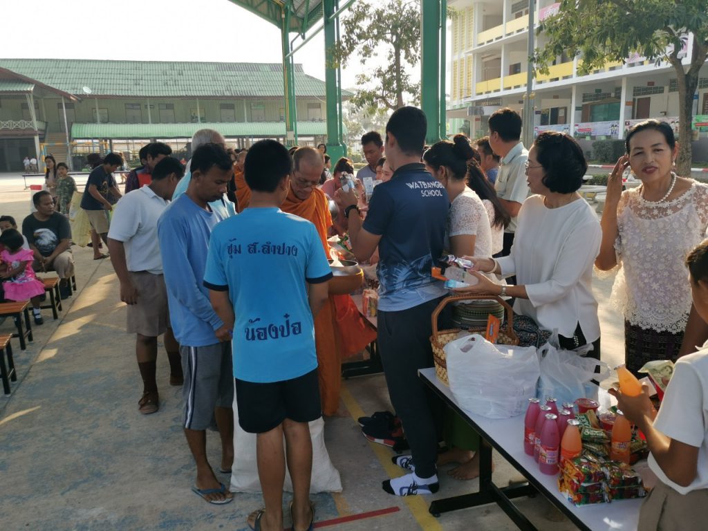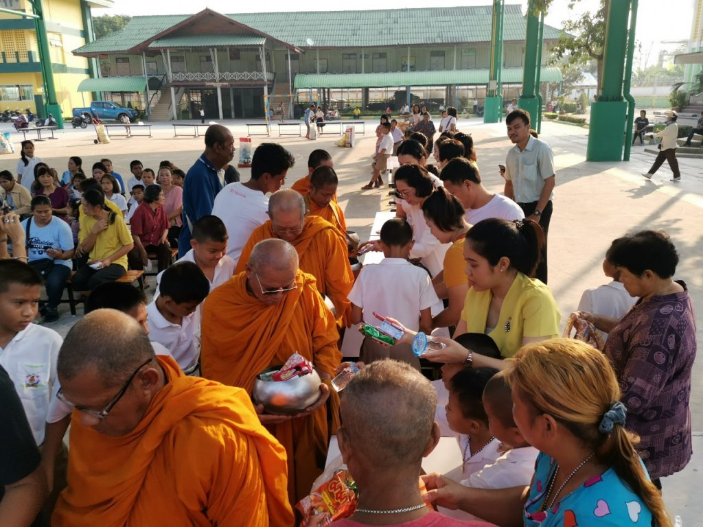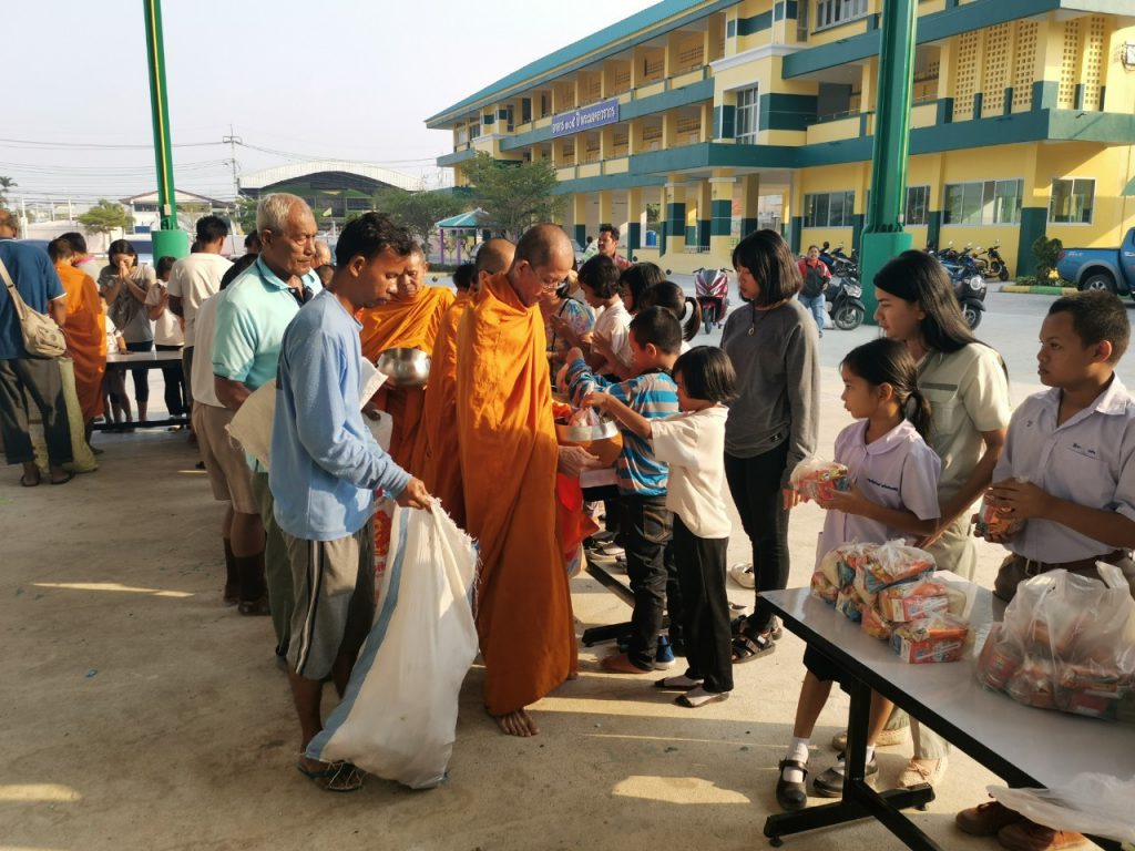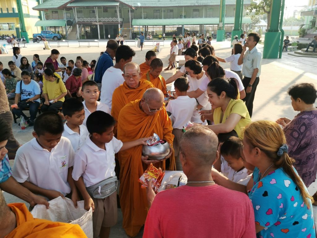 โรงเรียนวัดบางบ่อจัดกิจกรรมทำบุญตักบาตรข้าวสาร อาหารแห้ง เนื่องในโอกาสวันขึ้นปีใหม่ 2563