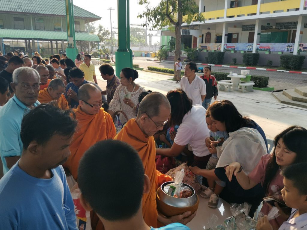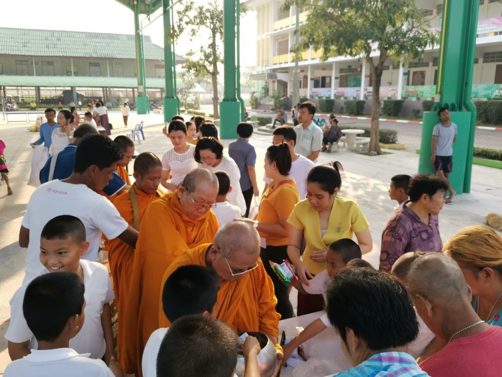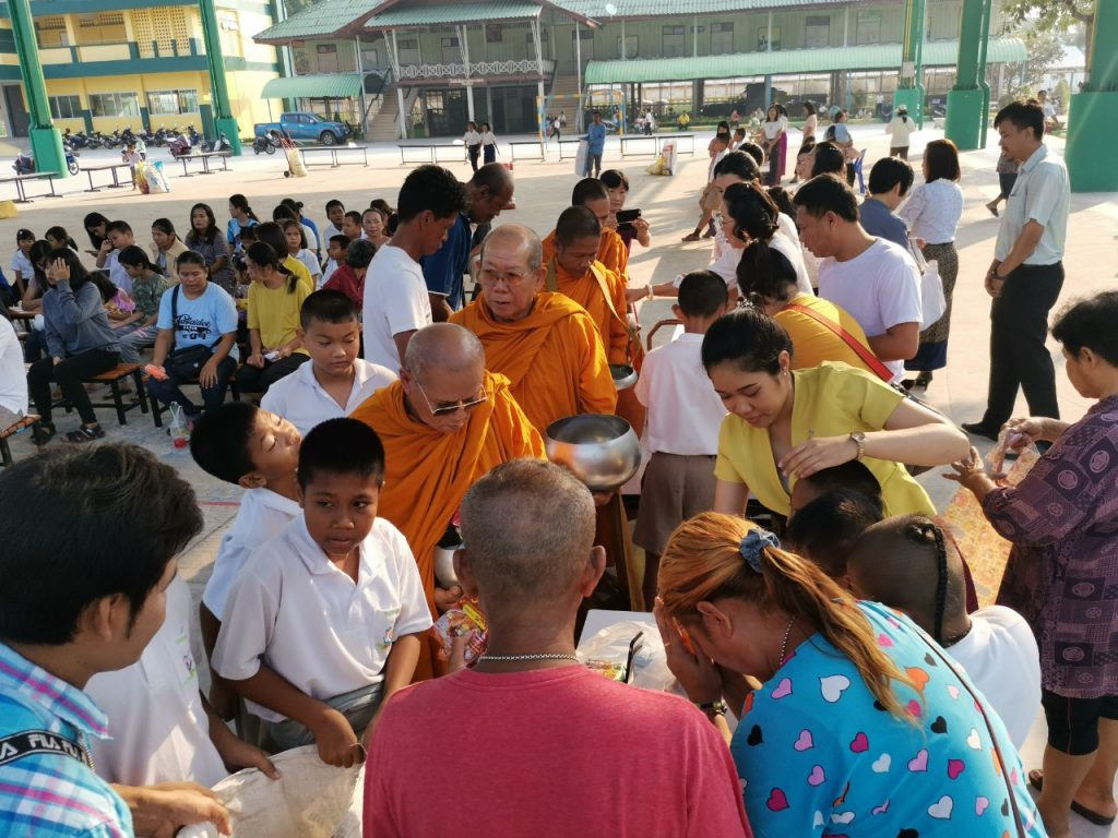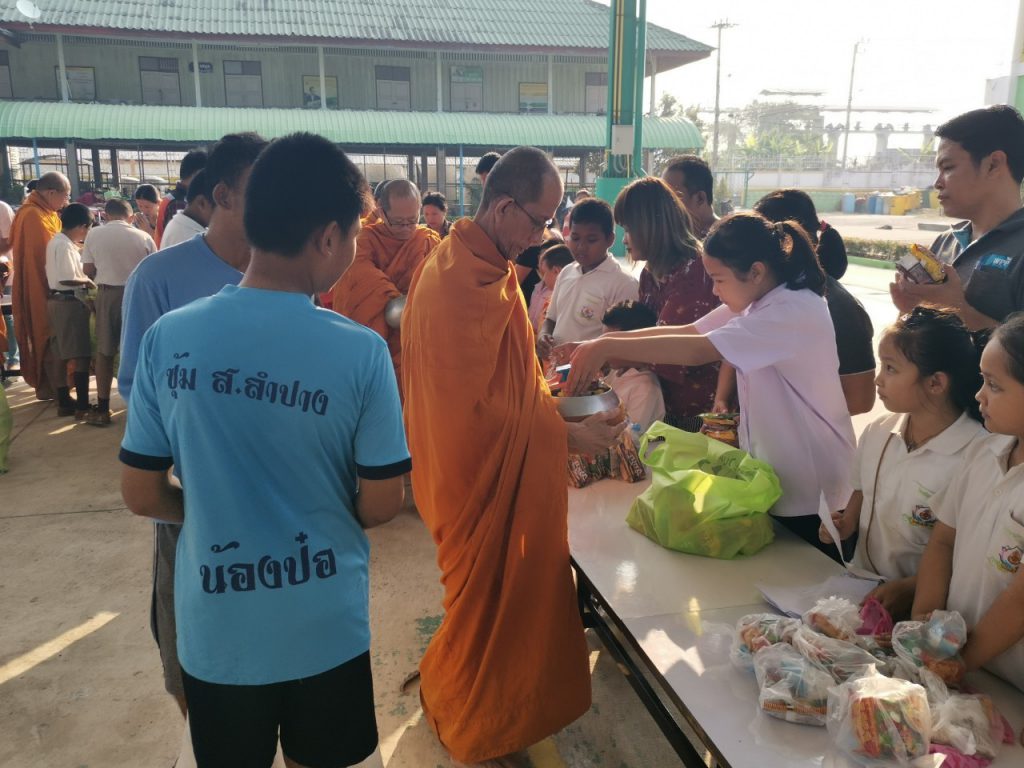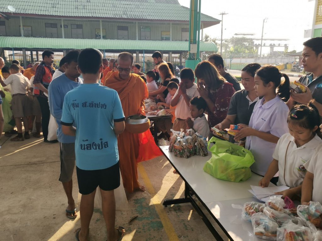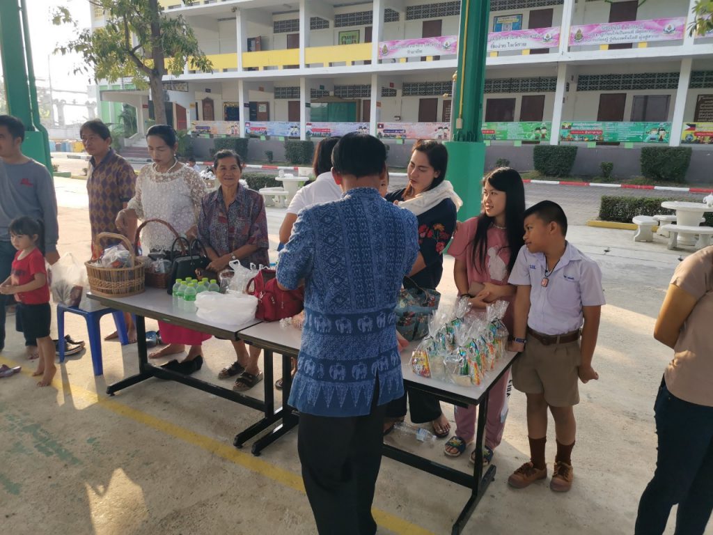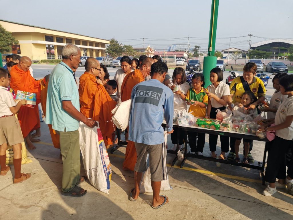 โรงเรียนวัดบางบ่อจัดกิจกรรมทำบุญตักบาตรข้าวสาร อาหารแห้ง เนื่องในโอกาสวันขึ้นปีใหม่ 2563