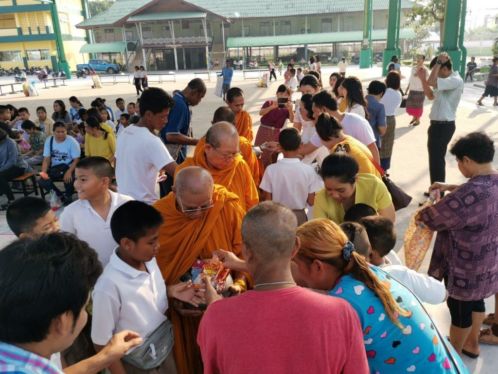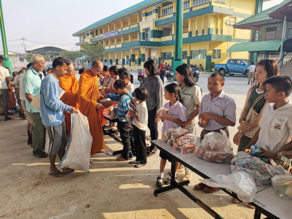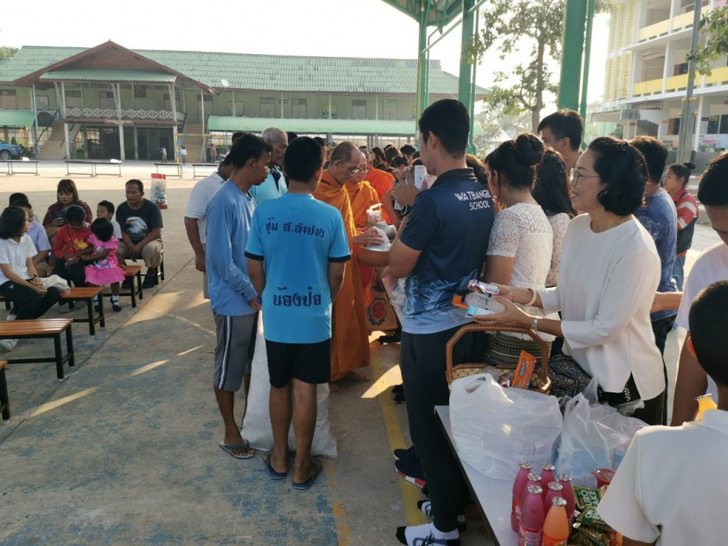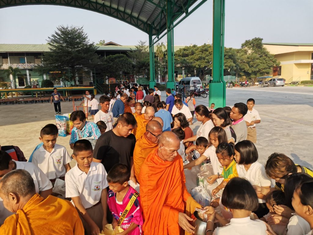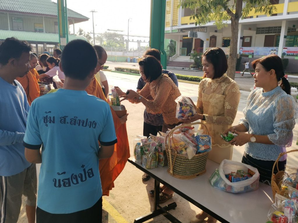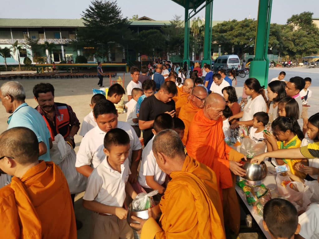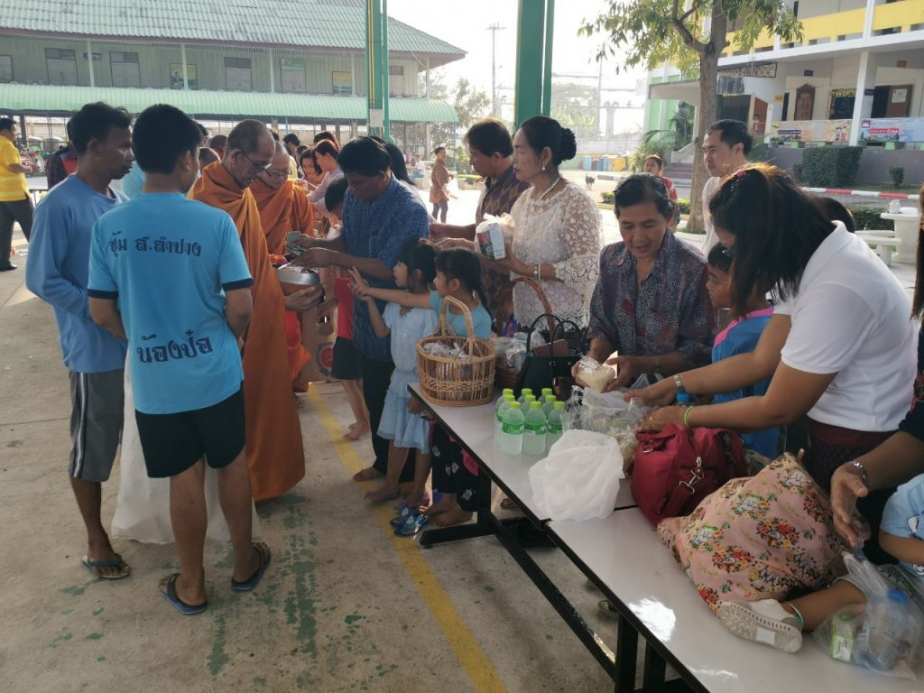 โรงเรียนวัดบางบ่อจัดกิจกรรมทำบุญตักบาตรข้าวสาร อาหารแห้ง เนื่องในโอกาสวันขึ้นปีใหม่ 2563