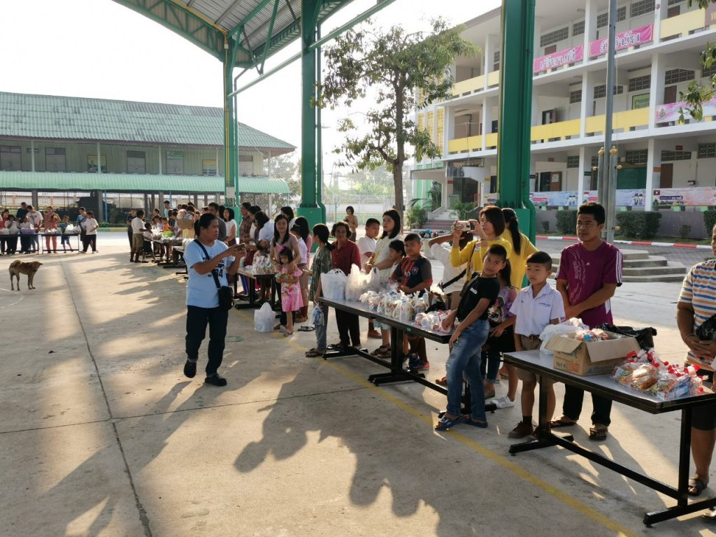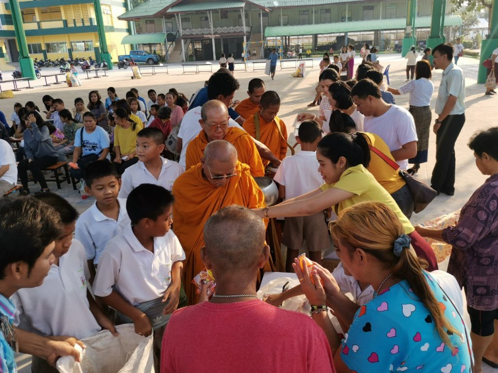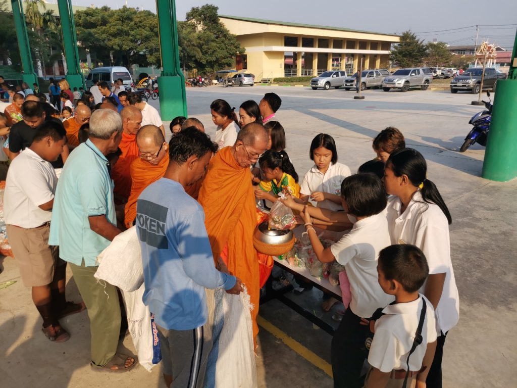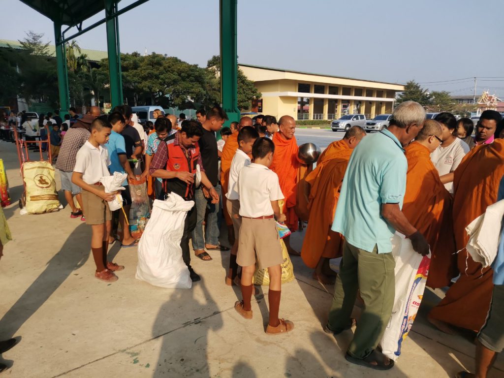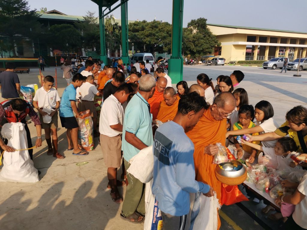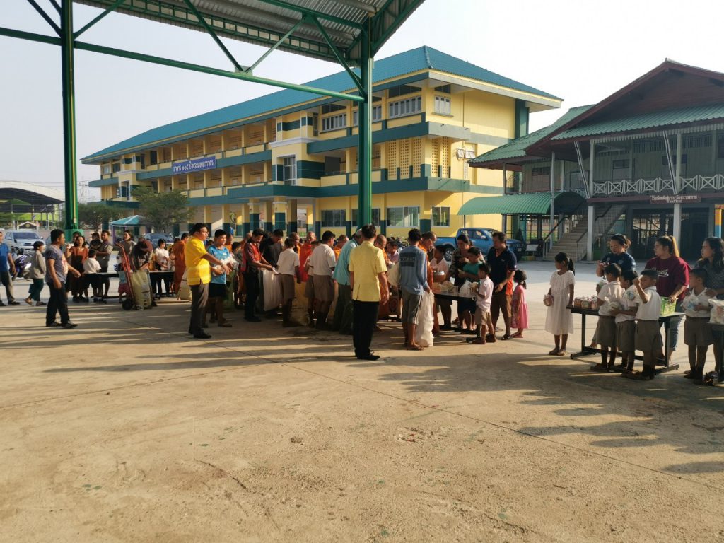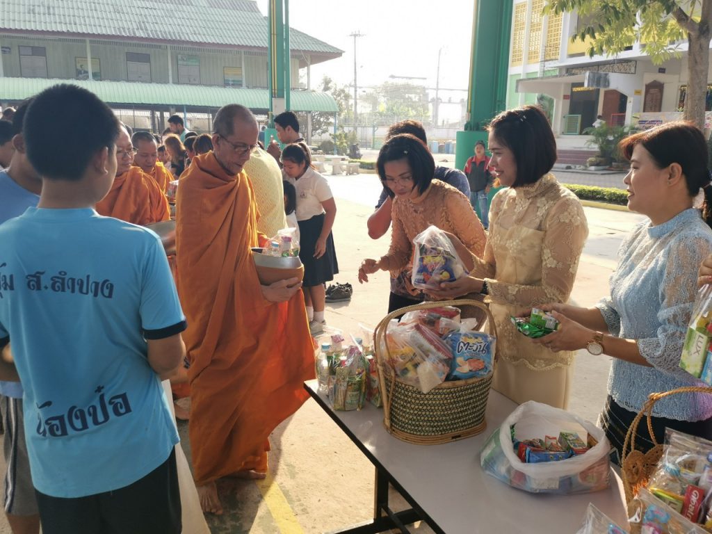 โรงเรียนวัดบางบ่อจัดกิจกรรมทำบุญตักบาตรข้าวสาร อาหารแห้ง เนื่องในโอกาสวันขึ้นปีใหม่ 2563