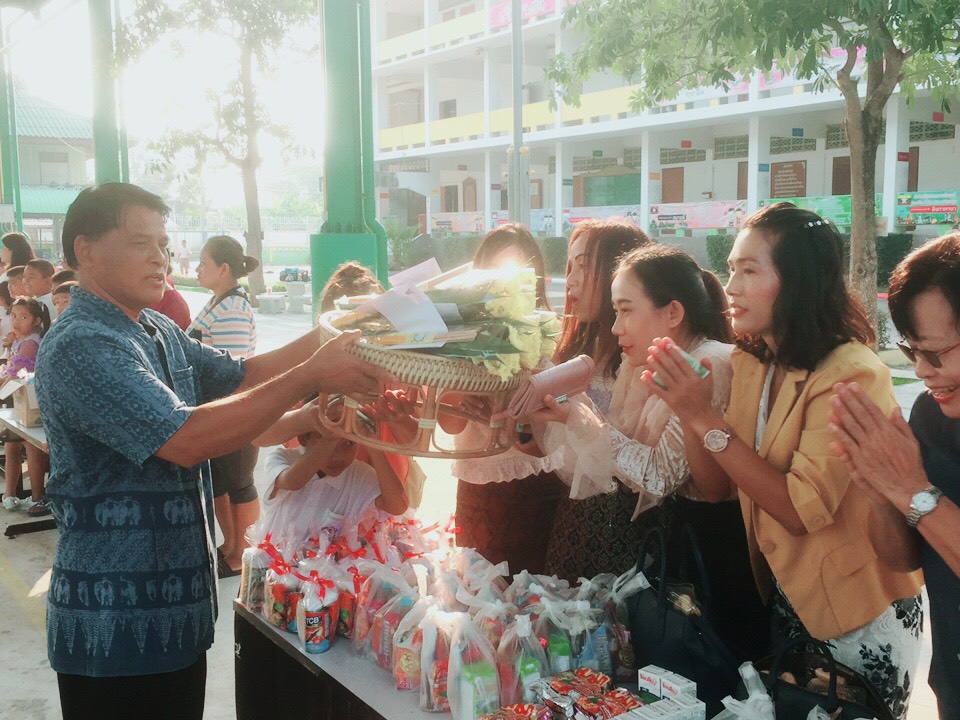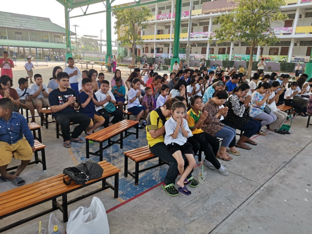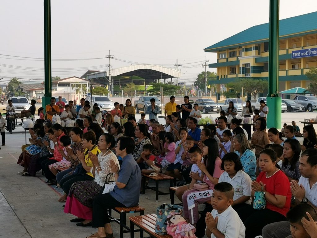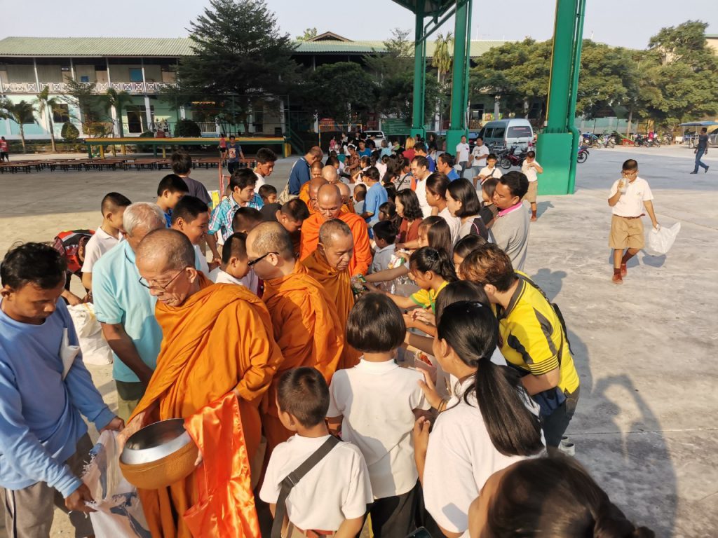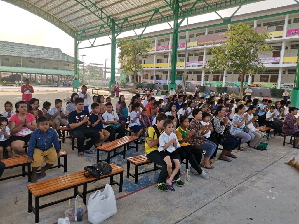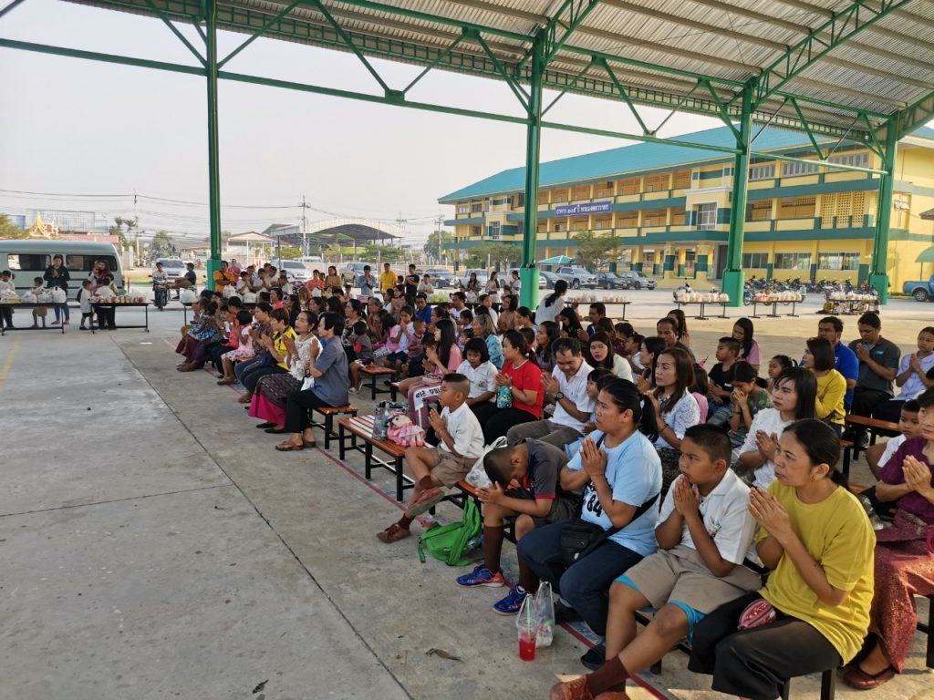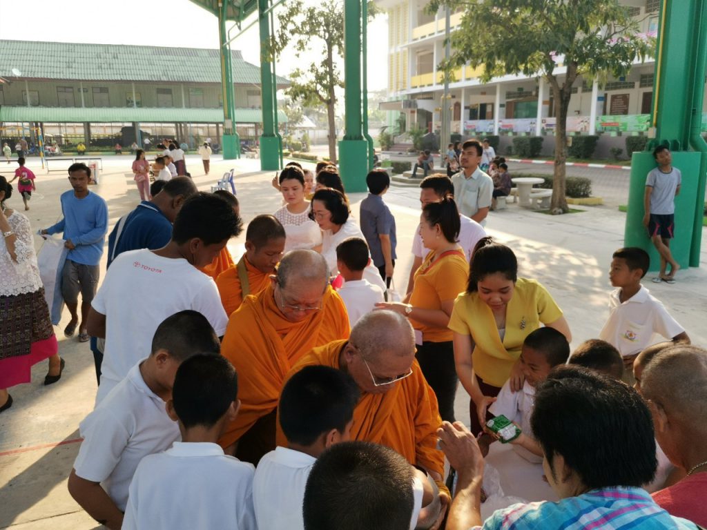 โรงเรียนวัดบางบ่อจัดกิจกรรมทำบุญตักบาตรข้าวสาร อาหารแห้ง เนื่องในโอกาสวันขึ้นปีใหม่ 2563