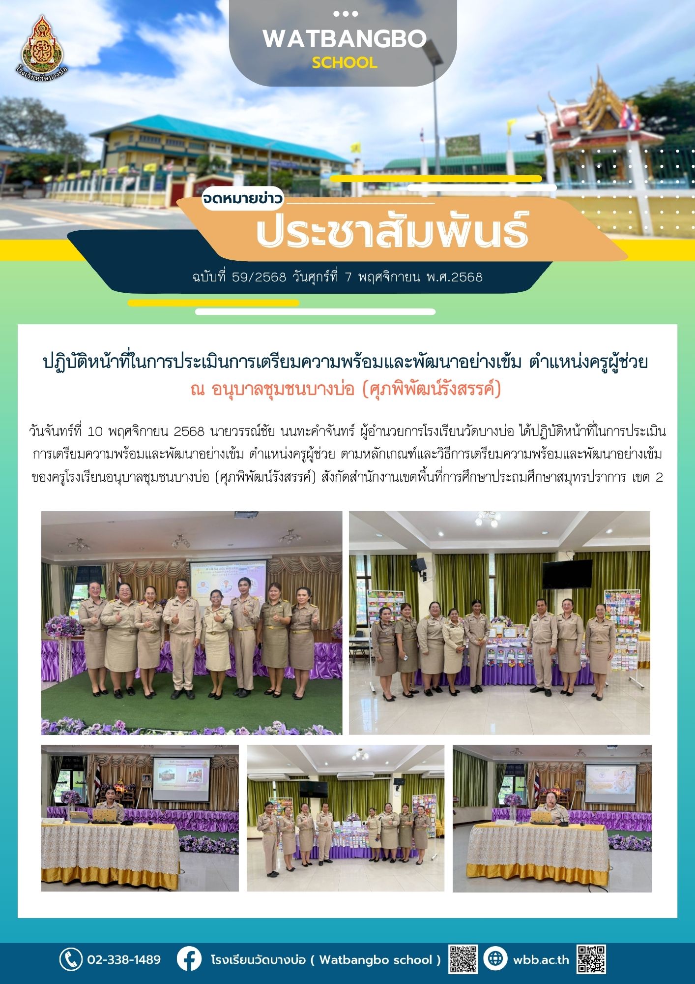 ปฏิบัติหน้าที่ในการประเมินการเตรียมความพร้อมและพัฒนาอย่างเข้ม ตำแหน่งครูผู้ช่วย ณ อนุบาลชุมชนบางบอ (ศุภพิพัฒนรังสรรค)